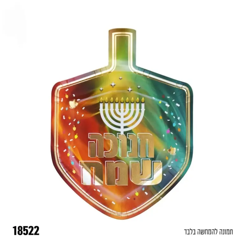 צלחת נייר חנוכה בחיתוך סביבון דגם 'אור וצבע' - 10 יח