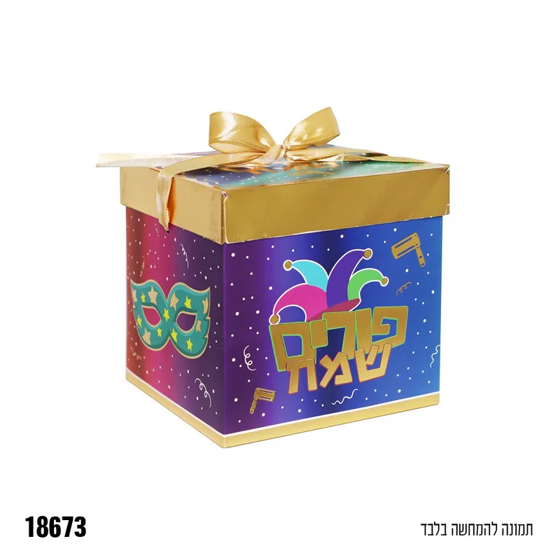 קופסת קרטון+מכסה פורים שמח כ-15*15*15 ס"מ
