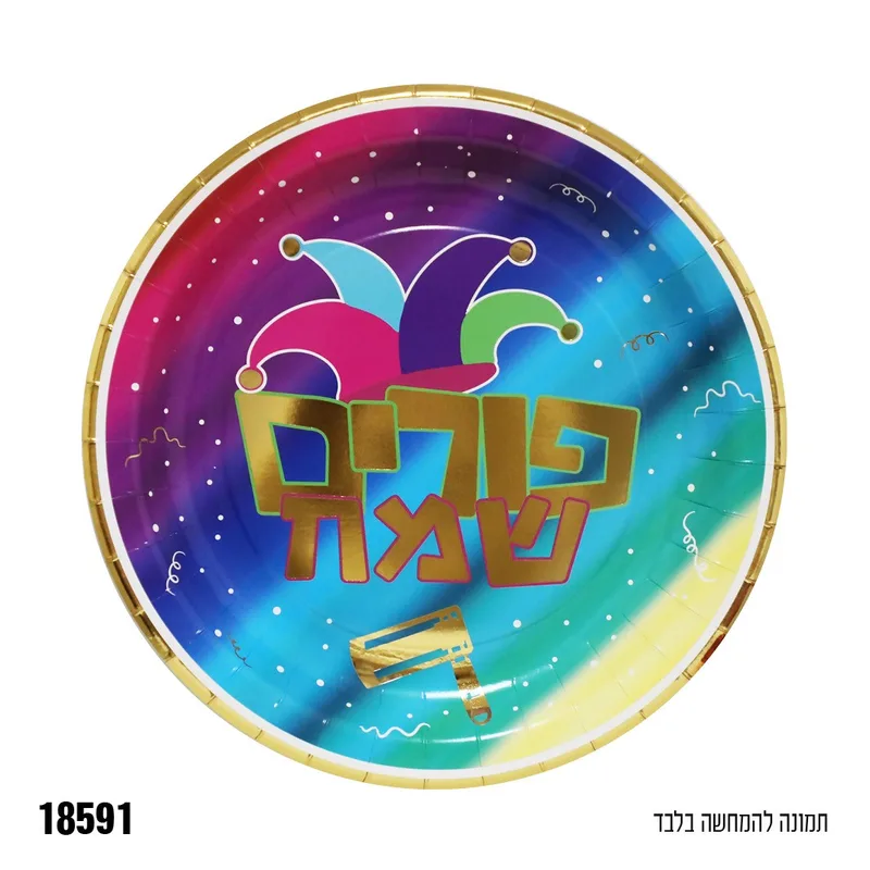 צלחות נייר פורים גדול פורים שמח 10 יח'