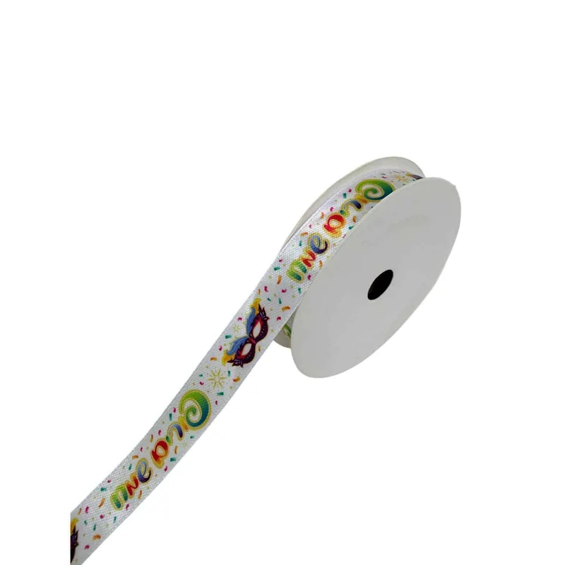 סרט סאטן רוחב 1.5 ס"מ- 10 מ' פורים שמח דגם מסכה