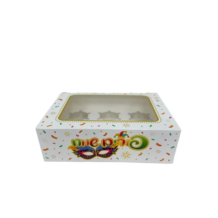 קופסאות קרטון ל6 קאפקייקס- פורים שמח מסכה