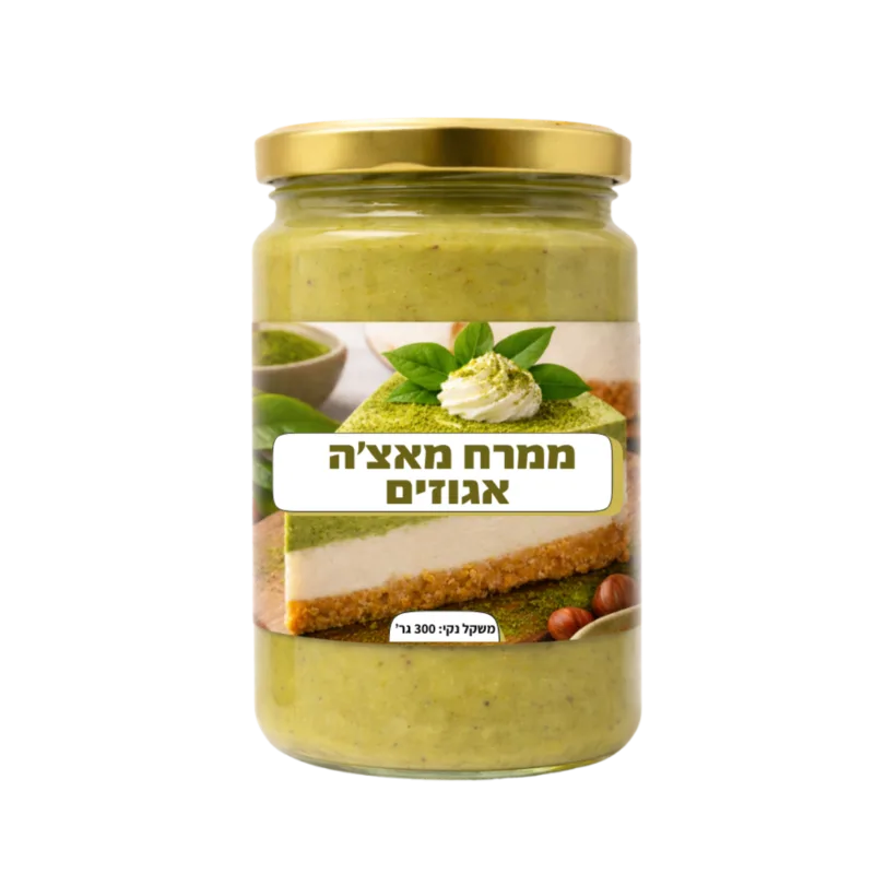 ממרח מאצ'ה אגוזים איכותי עם חתיכות אגוזי לוז גרוסים, במרקם קרמי וקראנצי' ובטעם עשיר של תה מאצ'ה ואגוזי לוז.