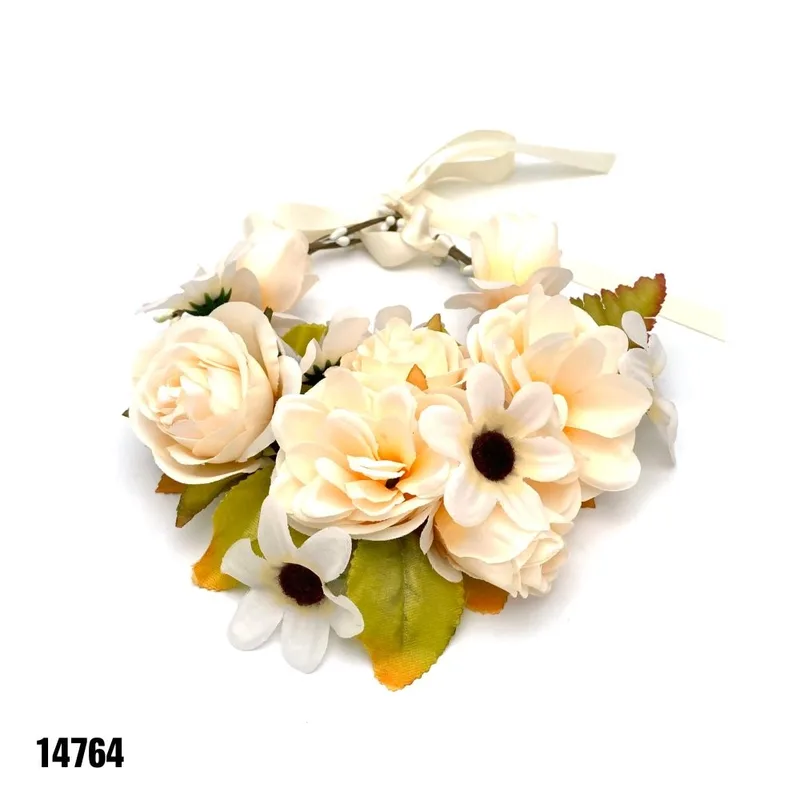 זר כתר פרחים במראה טבעי קרם ונגיעות כתום