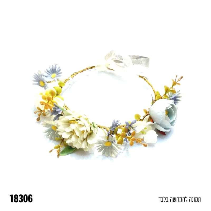 כתר פרחים - לבן+תכלת